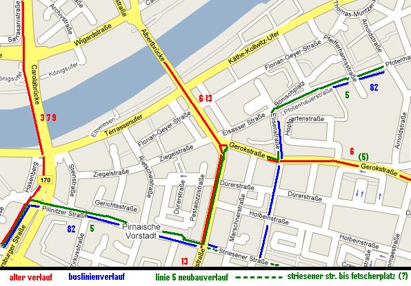 * Die Linie wie die 12 nach Leutewitz zu verlegen - und die 12 dann von der Kesselsdorfer noch mal eine Schneise Richtung Süden schlagen lassen