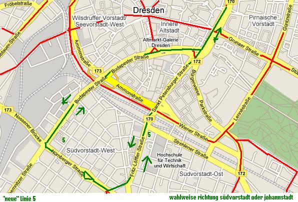Die Linienenführung mit der 8 (pirnaischer platz-hbf-nürnberger ei-budapester str-külring-pirnaischer platz) halte ich auch nicht für so optimal. Straßenbahnen sollen Punkte verbinden, keine Kreise drehen.