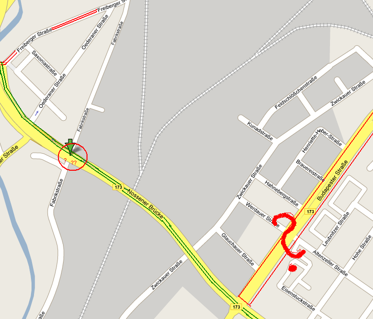 Zitat(yocheckit @ 09 Aug 2007, 17:54) ich seh da eigentlich nur ein problem zwischen wasaplatz und zellescher weg,...  inwiefern tun sich zwischen wasaplatz und zellescher weg problem(e) auf, der zellesche weg is breit genug gut zw. H c-d-f.str und wasaplatz is es bissl enger aber haste an anderen stellen in dd auch dass es da engpässe gibt z.b. H 1+2 marienberger straße nossener brücke: wie löst ihr das problem mit der zu/abfahrt von/auf die brücke (rot eingekreist besteht die nossener brücke nich aus 2 fahrtsträngen die so wie brücke budapester str und carolabrücke gebaut sind und sind nich miteinander verbunden, sondern abgetrennt... zudem noch "trennungpoller/-pylonen" zwischen den 2 spuren für beide fahrtrichtungen existieren? Dieser Beitrag wurde von airbender: 10 Aug 2007, 09:31 bearbeitet angehängte Dateien